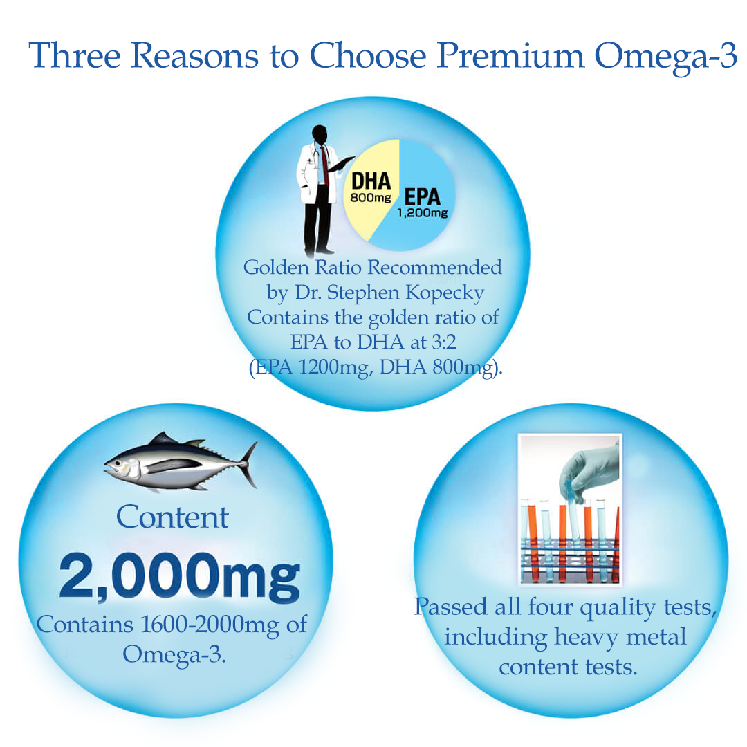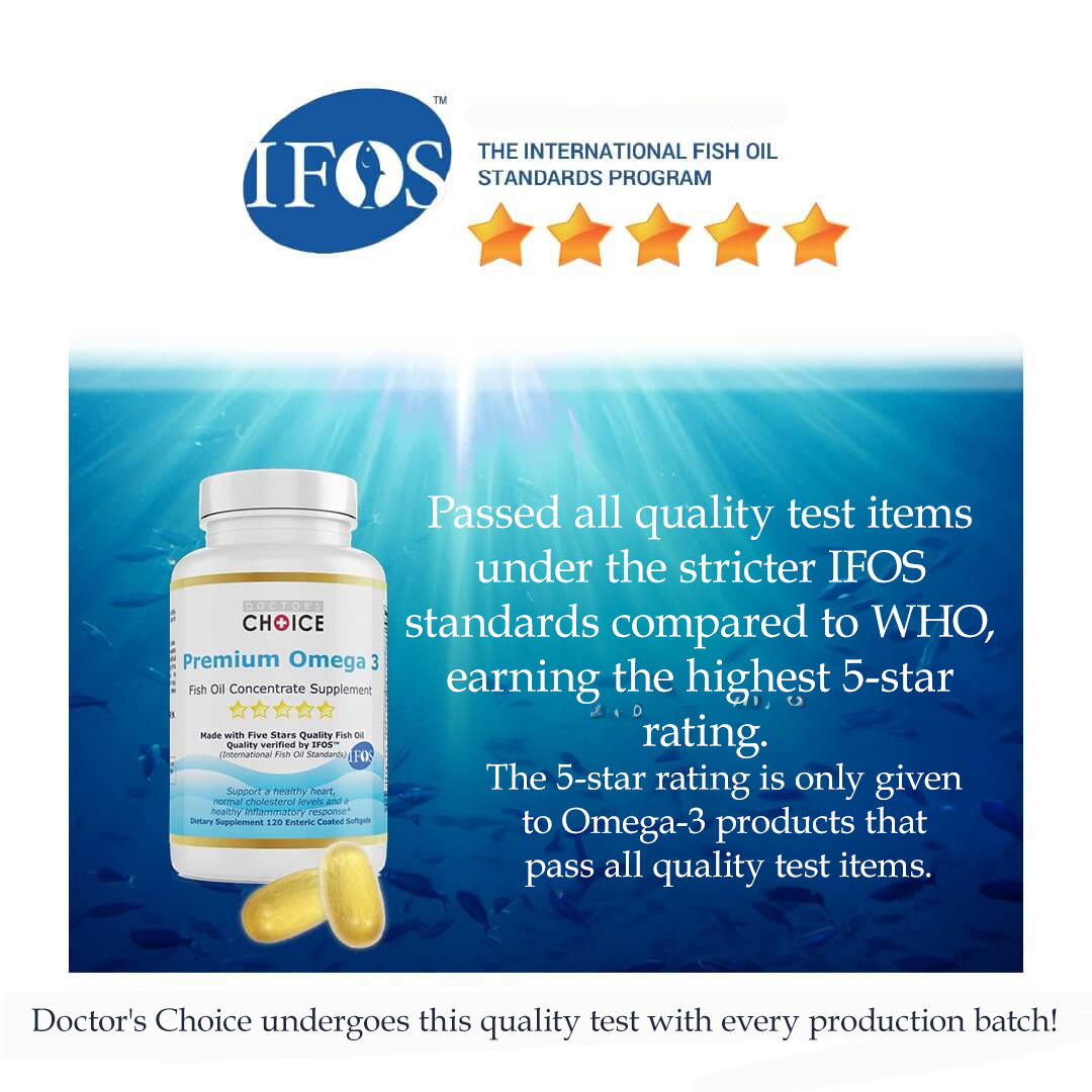 醫師之選優質魚油Omega3通過了魚油業界權威IFOS(國際魚油認証機構)制定的全數檢驗標準。是一款高純度的優質魚油保健食品。伴隨現今逐漸西化的飲食習慣,為了對抗中性脂肪和壞膽固醇,最好的辧法就是1天至少攝取2,000mg的Omega3魚油。