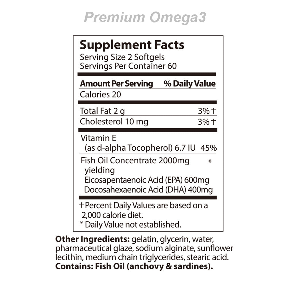 濃縮魚油:(萃取自鯷魚和沙丁魚)2,000 mg